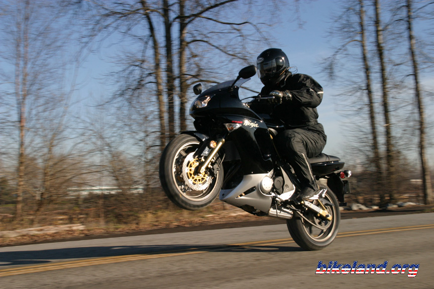 Though I have several, many are blurred, grainy, and for the most part suck, but this one is by far the best. Harry snapped this one back in May while we were horsing around on the Foothills Parkway. Chris took one that is probably the second best, just a little dark and grainy. It was a better wheelie for sure, and Chris did a good job considering I blew past him at the top of second gear.