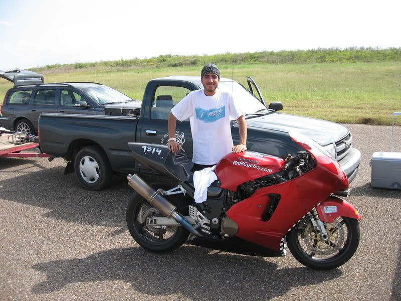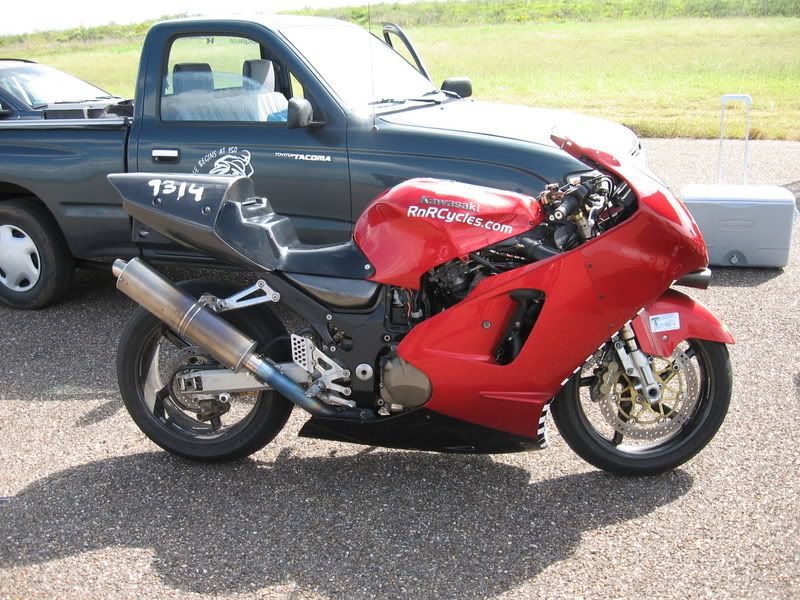 He is the fastest 1200cc Nos bike at the Texas Mile! (Whipped up on my old record of 195.74). Ali may also be the overall Fastest ZX-12 at the Texas Mile as well. There was a 1317 that was spraying, but I am not sure what he ran.
