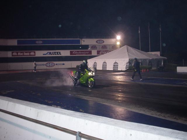 There were three photographers there at the race in Phoenix, and I told all of them that I wanted a burnout pic. They all replied with ,"Then, how about you quit doing those pussy burnouts." (or something to that effect.) So, what does a guy do when his manhood is questioned? I started doing John Force burnouts for the rest of the race.