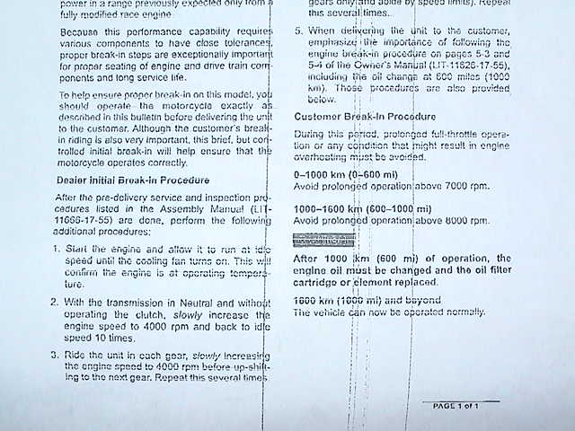 My thought is all superbike customers are in need to have detailed technical explanation as to why break-in a certain way. Forum opinions and experience is helpfull and well intended.I am very gratefull to have forum as one of my sources; but the manufacturer themselves should offer in the owners manual the ZX-10R comes with detailed instructions that leave little or no questions as to HOW and offer more technical information upon request. I would like their technical position in writing ; addressing if new manufacturing processes matter or at least address.