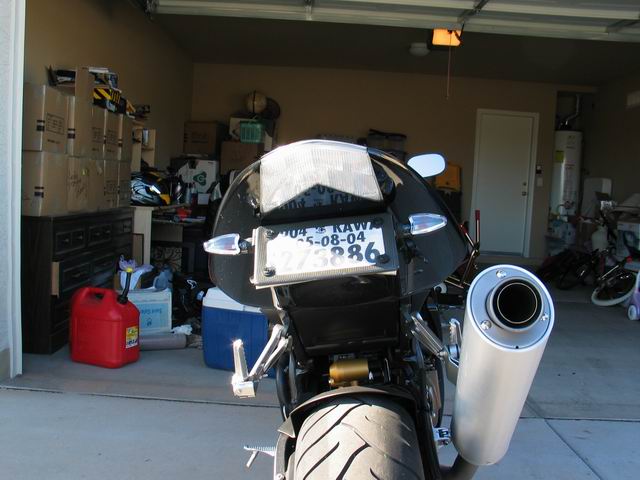 Since I got the bike I have done some minor mods...more temporary than anything, I made the fender eliminator myself (waiting on one from ballistic) and installed front blinkers (waiting on euro blinkers from zpowersports)...I couldn't just stay still you know?