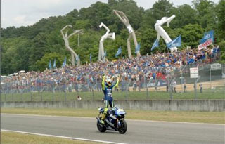 "That was an incredible race and the best possible finish for the crowd, with four Italian riders in the top four positions," said Rossi. "It was a great battle - full of passes and full of attacks. In the beginning I tried to go alone but I had some problems with the front tyre and decided just to concentrate on my rhythm. Then Melandri arrived and we had a great fight, also with Biaggi after that. We set a high pace to the finish, I made my attack with three laps to go and it worked so of course I am very happy."