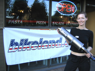 Through a link on Bikeland.org's website, $200 in tickets were sold with the chance to win a Muzzy Titanium Slip on exhaust for a 2004/05 Kawasaki ZX-10R, a Bikeland Long Sleeve Shirt, a Bikeland T-Shirt, and a Bikeland Beanie.