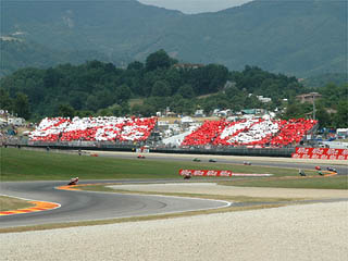 In 2005, more than 3000 Ducatisti filled the Correntaio curve with their passion for the "Reds of Borgo Panigale". Famous for its spectacular views of the Tuscan track, the Correntaio curve has become the heart of Ducati at Mugello. For 2006, Ducati fans again have the opportunity to join the fun: three days at Mugello supporting the Ducati MotoGP riders and becoming part of the history of Ducati. The Desmodromic Club of Rome will again lead the fan choreography during the races. As if that isn't enough, there is a huge screen right in front of the Grandstand so that you can be sure you won't miss any of the action around the circuit.
