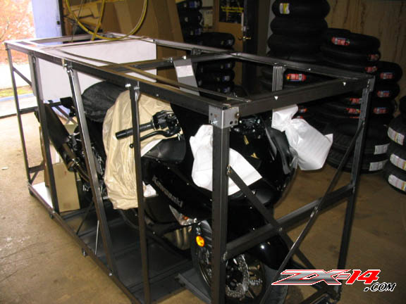Here's the 1st ZX-14 (ever) being uncrated...