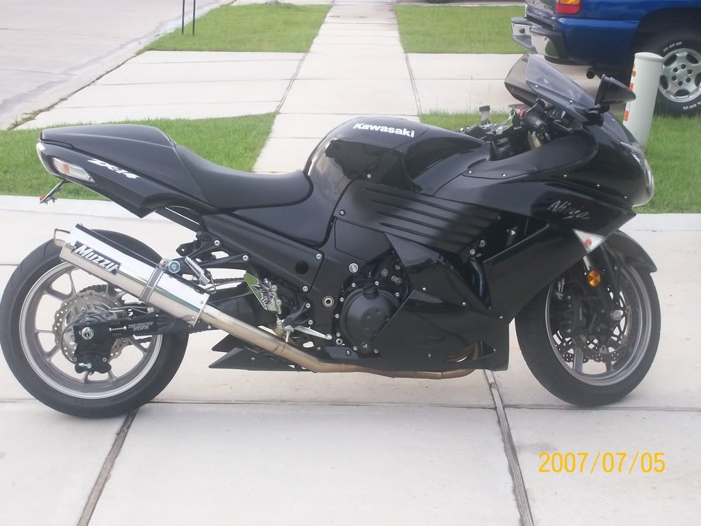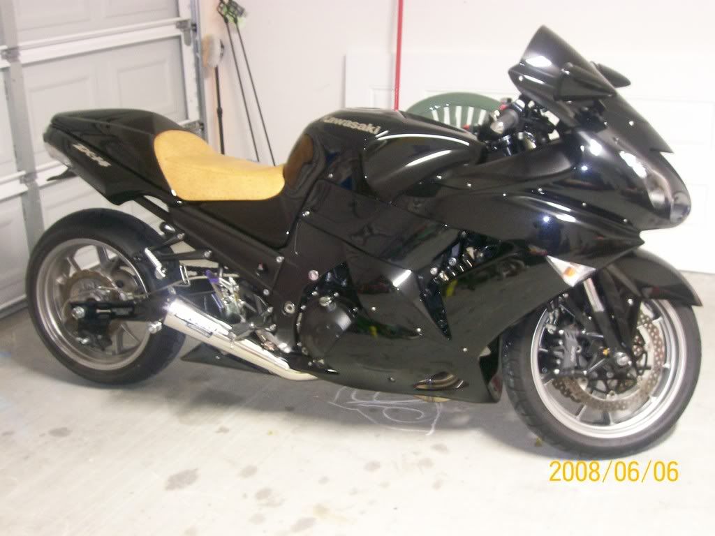 2006 Black ZX-14,6 inches over,16/42, flies out,BMC Street Filter,Brock's Street Meg,Brock's Radial Mount Strap,PClll with Race map,Dynojet LCD w/Techmount, ZX-14 fender eliminator,Pilot Power2CTs,Speedohealer,Pazzo Levers,Cox Radiator Guard, Garmin Nuvi 265WT