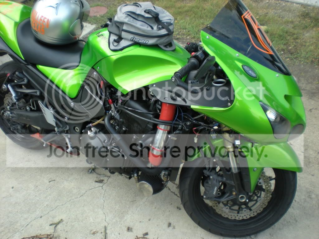 Yes I no it's not to Pritty, it's my first attempt on a budget. I'll replace all the fuel lines soon, but about the air filter it came that way with the turbo. Found this kit on eBay for super cheap and couldn't pass it up. The fairing were still off on those pics because I was just going around the block double chacking nothing was leaking. But I do admit I should've waited a little to put it together... Kind of inpatient lol. But all advice is greatly appreciated, this is my first so please excuse the mess!
