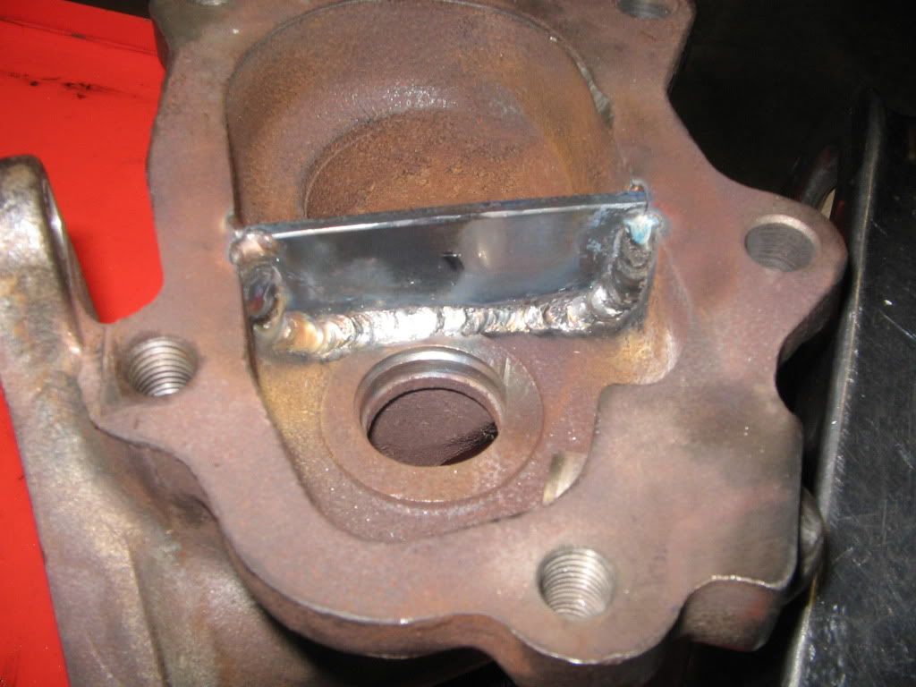external waste gates dont boost creep as bad as internals and its a lot easier to get the right spring for the boost you want versus an accuator. And if you are talking about the two bolt holes on the cold side of the turbo thats where the bracket for the internal waste gate used to bolt on.