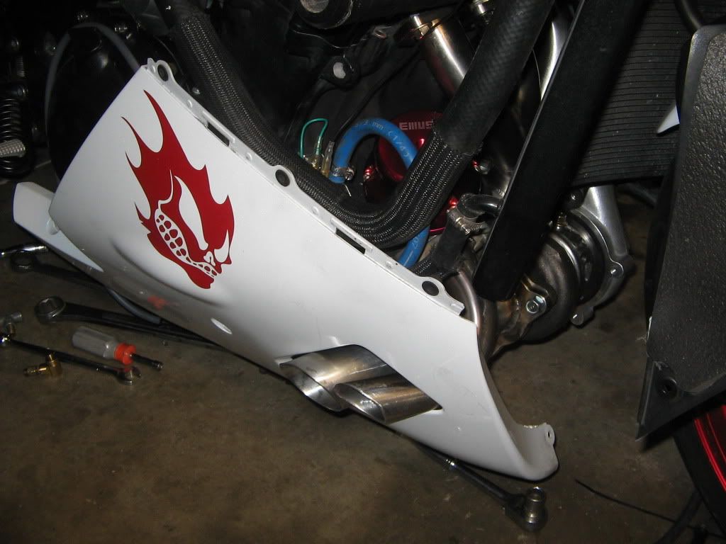 I think with that hair dryer hanging off the front of the motor, I could get used to seeing the bike with no real exhaust on it!!