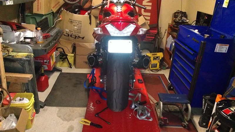 2010 ZX14 Candy Persimmon Red / Brocks CT Dual / PCV w/Brocks Maps / speed tactics fender eliminator / zero gravity double bubble / heli bar risers / Joe Florida 162-Multi-Color LED SportsBike Accent Light Kit w/Remote Control /