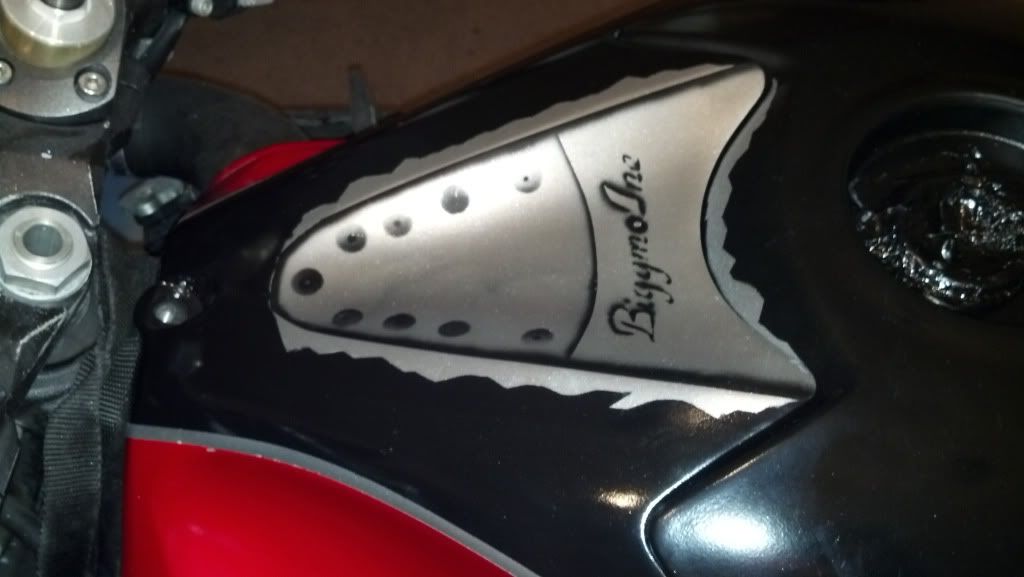 Can't take credit for scheme I looked at 300 or so bikes , it was a toss up between 2 bikes. Two that I thought I could do, decided against the busa cause I needed smooth side pieces to pull it off so I used a black n gold drag 14 as a template, all I changed was the tank n rear seat cowl, other than what I can see in the pic, besides the color,