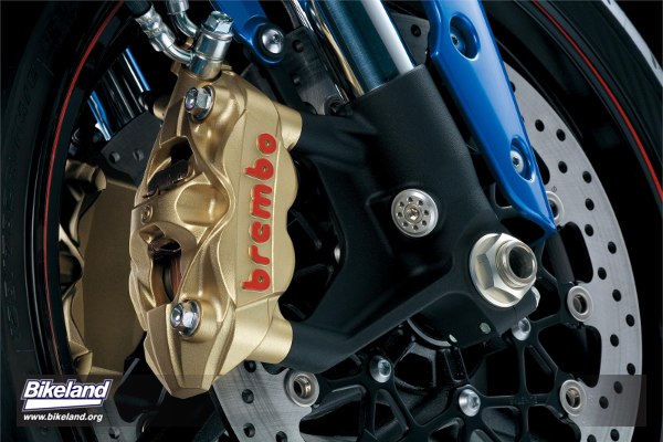 * The front disk brakes are equipped with the top-of-the-line radial-mount Brembo Monoblock callipers and lighter Sunstar Engineering front discs.
