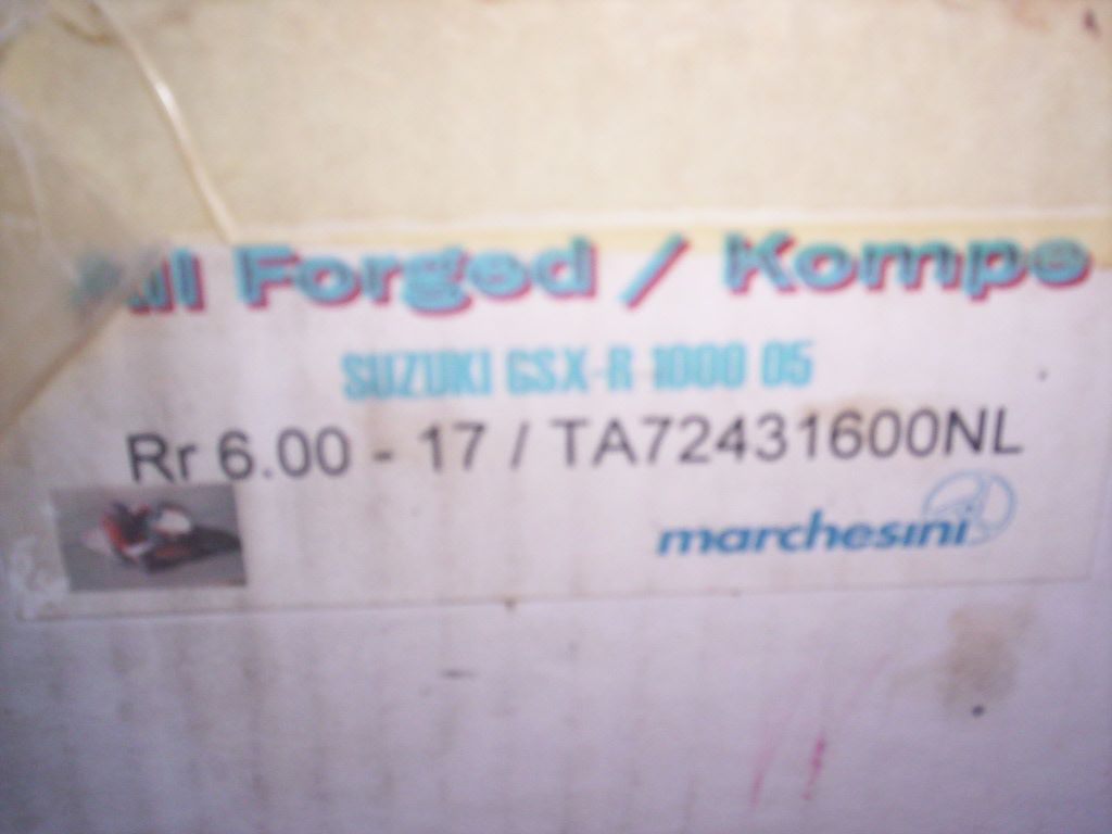 [URL=http://s1341.photobucket.com/user/fred0275/media/PartsforSale001_zps7c4691bb.jpg.html] [/URL]Marchesini Forged Rear Wheel 6.00 X 17 Black, Brand new, had one tire put on then taken back off. Box says for 2006 GSXR1000, may fit more. Has spacers included. $850[URL=http://s1341.photobucket.com/user/fred0275/media/PartsforSale003_zps2696e9ad.jpg.html] [/URL][URL=http://s1341.photobucket.com/user/fred0275/media/PartsforSale002_zps3b9ca84d.jpg.html] [/URL]