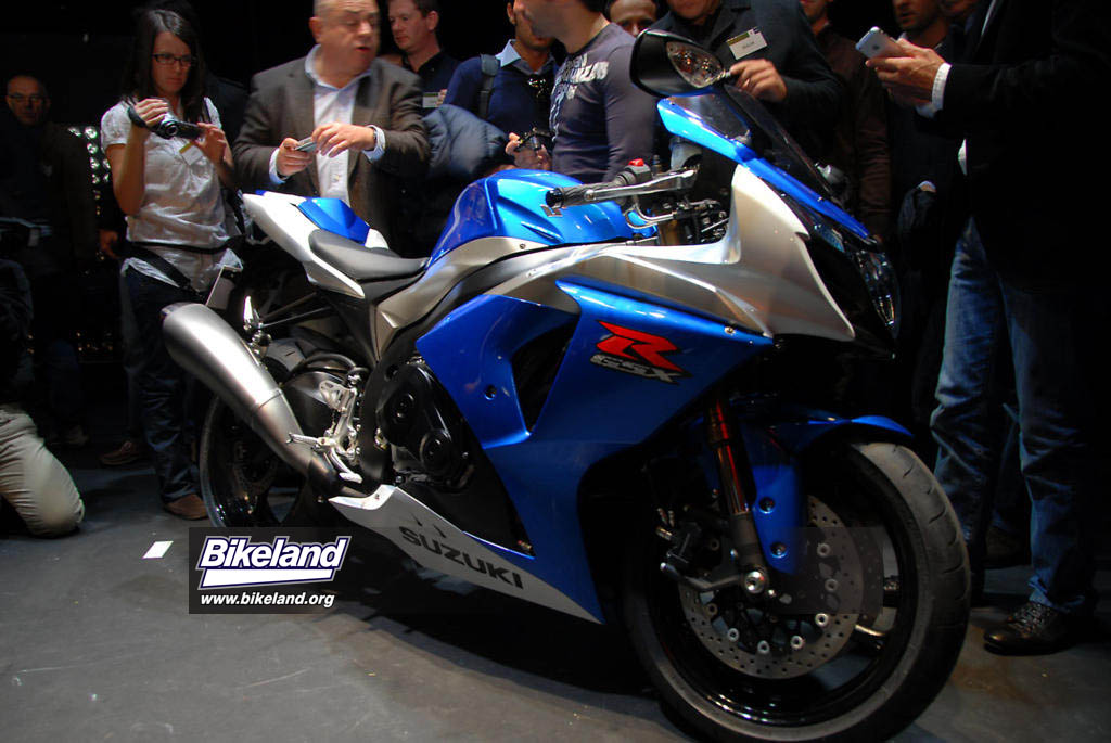 We can now confirm that Suzuki has officially released their all-new GSX-R1000 for the European market in a launch in Paris, France today. After springing a minor Internet "leak" with grainy images splashing their way across biker forums around the globe, official images are now available confirming this new model, along with European specs and colors. Also released is a new Boulevard M90, looking nearly identical to the '08 M109. Finally, there is a entry-level machine labeled Gladius (SFV-650), though few details have been released. American Suzuki has yet to unveil their lineup for 2009. Photos and specs below...
