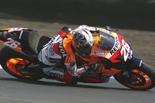 Rookie Pedrosa gives racing masterclass at Donington Park2006-07-02 08:23![]() Pedrosa would eventually go on to win the race by over three and a half seconds, blissfully unaware of the scrap for podium positions behind him. His victory moves him within 26 points of his teammate and championship leader Nicky Hayden, who could only manage seventh today as his title rivals cut chunks out of his sizeable lead. The podium spots were decided after a last lap dice between Valentino Rossi and Marco Melandri. Rossi had ridden a superb race from twelfth on the grid, clawing his way through the field. The reigning World Champion was up to fifth by the halfway point of the race, and continued his ascension through the top six before the epic final lap battle with Melandri, in which he came out on top after Melandri ran wide on the Melbourne Loop hairpin. Casey Stoner and Kenny Roberts Jr had also tussled for podium positions after starting well, eventually finishing fourth and fifth respectively. Colin Edwards finished ahead of Nicky Hayden in sixth, revenge of sorts for last weekend's final lap at Assen. John Hopkins started the race well once again, but faded in the second half to come home eighth. The injured Loris Capirossi and Carlos Checa completed the top ten. 250cc Jorge Lorenzo took a second uncontested victory in the 250cc GAS British Grand Prix, taking victory by more than six seconds to repeat his runaway Assen performance. The Spaniard led from pole position, with main title rival Andrea Dovizioso doing a remarkable job of sticking with the Fortuna Aprilia rider. However, a crash from the Italian whilst in hot pursuit left Lorenzo to complete the race in relative isolation. Alex de Angelis put in a superb pass on Hiroshi Aoyama on the final lap, forcing the Japanese rider wide as he attempted to take back the position. Roberto Locatelli had yet another noteworthy performance, and took fourth ahead of the returning Hector Barbera and the luckless Dovizioso who had picked his bike up after his slide. His team-mate Yuki Takahashi, Sylvain Guintoli and Anthony West were eighth and ninth respectively, whilst Marco Simoncelli rounded off the top ten despite suffering a crash on the closing laps. The British victory puts Lorenzo just one point behind Dovizioso in the classification. 125cc Alvaro Bautista completed a Spanish triple crown of wins at Donington Park, and like the two classes to race before him, he did it in dominating fashion. The Aprilia rider had started from pole position, although did not get to the front of the pack until the third lap. He then opened up a huge gap to the duo battling behind him, Mika Kallio and Mattia Pasini, eventually crossing the line with three and a half seconds to spare. A daring last corner manoeuvre saw Finland's Kallio reduce the damage to his title chances to the minimum as he took second, with Pasini coming home four hundredths of a second behind. Bautista's team-mates Hector Faubel and Sergio Gadea completed the top five, with Joan Olive, Lukas Pesek, Thomas Luthi, Nico Terol and Gabor Talmacsi rounding off the top ten. There was some cheer for British racefans meanwhile, as 15 year-old Bradley Smith took his first World Championship points at his home race. The Repsol Honda rider came home in twelfth place (4pts) after having finished the last two races in sixteenth spot and just outside the points. 1st. Dani Pedrosa (Honda): "I'm very happy to be first. Overall it was a fantastic weekend. I want to thank my team and all the people around me for a great job, the whole weekend was good through practice to the race itself. At the beginning it was difficult, I had a good start, perfect when compared to other races. I couldn't brake any more on lap four and I ran wide but I was able to come back to take the lead." 2nd. Valentino Rossi (Yamaha): "For sure it was a great race for the people watching and for me, it was almost like a victory. It has been a difficult week after Assen and the crash, I made a huge effort to be here in good shape, and my wrist didn't feel so bad during the race, Doctor Costa and my physiotherapists did a good job, I didn't have my maximum power but it was good. This weekend we struggled with the bike, usually we are excellent here but this time it was always a case of fighting against it. We prepared a new setting and a new tyre this morning for the warm-up, but then it rained so by race time everything was new to us and I needed laps to find my rhythm. It was a great battle with Marco at the end." 3rd. Marco Melandri (Honda): "It was so hard at every point, after a few laps I was little tired but told myself to continue. The doctors helped me to earn this good result. I'm not so happy about the first part of the race though, I had changed my settings from yesterday and with a full tank it was really hard to control the bike, my rear tyre was sliding but later on it got better. I found a good rhythm alongside Valentino and tried to pass him... I thought that I could fight for second place, unfortunately on the last hairpin I hit the brakes but was going too fast and ran wide. It's a good result but I'm still a little disappointed." Source: Dorna Communications Photo: Honda Pro Image Click here to visit our forums to discuss this story |