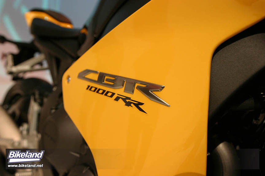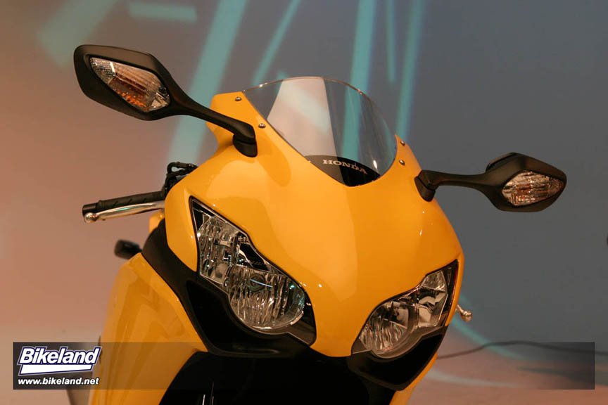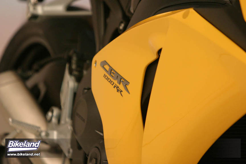Internet spy photos have been transformed into reality as I reach out and touch the tank of the new 1000. Cropped at the nose and at the tail, the short and narrow RR is a clear indication that GP styling is continuing to make its way to the street. I can see the plate of sandwiches out of the corner of my eye and I am being encouraged to eat them by Honda officials. Is this some sort of test? Motorcycle or sandwich? They're good looking sandwiches, but instead I catch myself looking at this jewel of a motorcycle - because I can't take my eyes off of it.