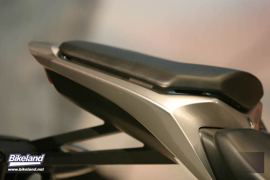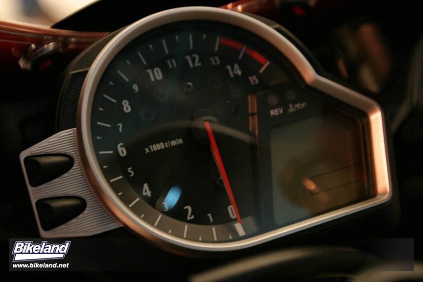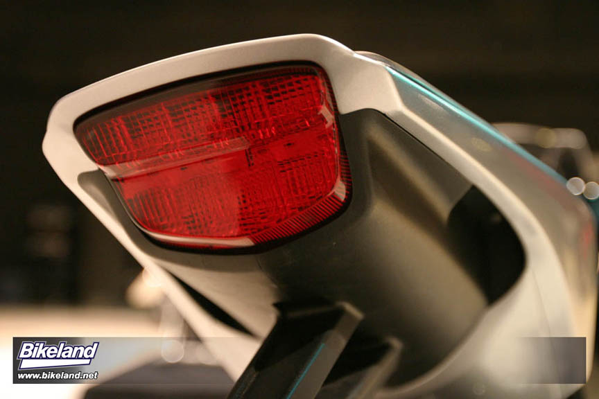 Crane your head and look behind you and you're presented with a view that's almost Buell-esque in fashion - there's literally no bike there! Legroom is adequate for my 6'3" plus body, and the seat is about as comfortable as you could expect from a race pedigree track bike. The reach to the clip-ons is comfortable and the overall seating position falls somewhere between a 1098 and a ZX-10R.