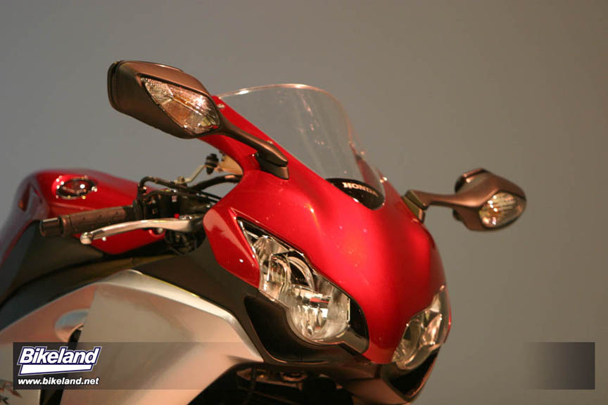 Taking some subtle and some not so subtle cues from the wildly successful 1098, the RR sports 1098 style mirrors with integrated turn signals that, unlike the Ducati, pivot. Extending further out, they provide a slightly better view rearward than the Italian counterpart. Overall fit and finish of the CBR is impeccable, right down to the steering dampener hidden underneath the front of the gas tank.