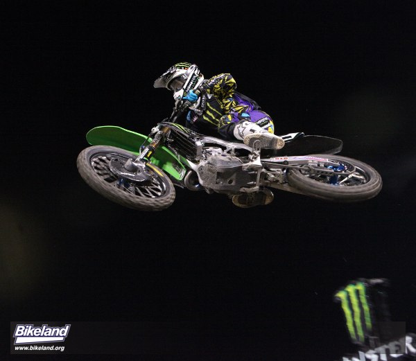 Ryan Villopoto returned to racing Saturday night besting Ryan Dungey, James Stewart, Trey Canard and Chad Reed to win 2011’s first Monster Supercross event. The odds were not in his favor. James Stewart out-qualified the field and aggressively won his heat. The sold out Anaheim crowd anticipated Stewart would dispatch the doubters and the competitors in the main event. Trey Canard had qualified second overall and looked ready to prove his new factory Honda ride was well deserved. Ryan Dungey and his Rockstar Makita Suzuki wanted to overcome the “If RV, Chad and Bubba had been healthy last year…” knocks on his 2010 championship. Chad Reed wanted to beat them all and prove he can do it without factory support. Villopoto however just wanted to race again after the ugly accident that broke both his femur and his run for the 2010 crown. Villopoto told us he’d been training hard and he proved it at Anaheim, leaping his Monster Energy Kawasaki past early leader Ivan Tedesco on lap four and never looking back. Villopoto is definitely back and a force to be reckoned with.